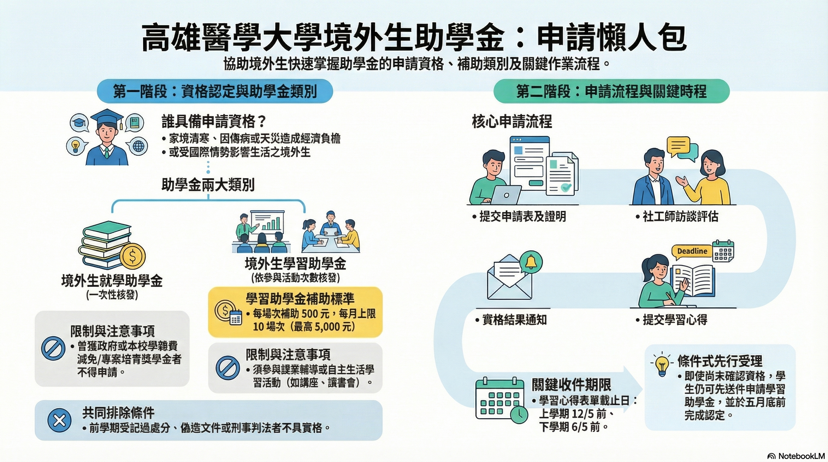 - 學習助學金申請得先行受理,惟申請人應於114年5月31日前完成資格認定;未於期限內完成者,視同放棄申請,不予核發。
