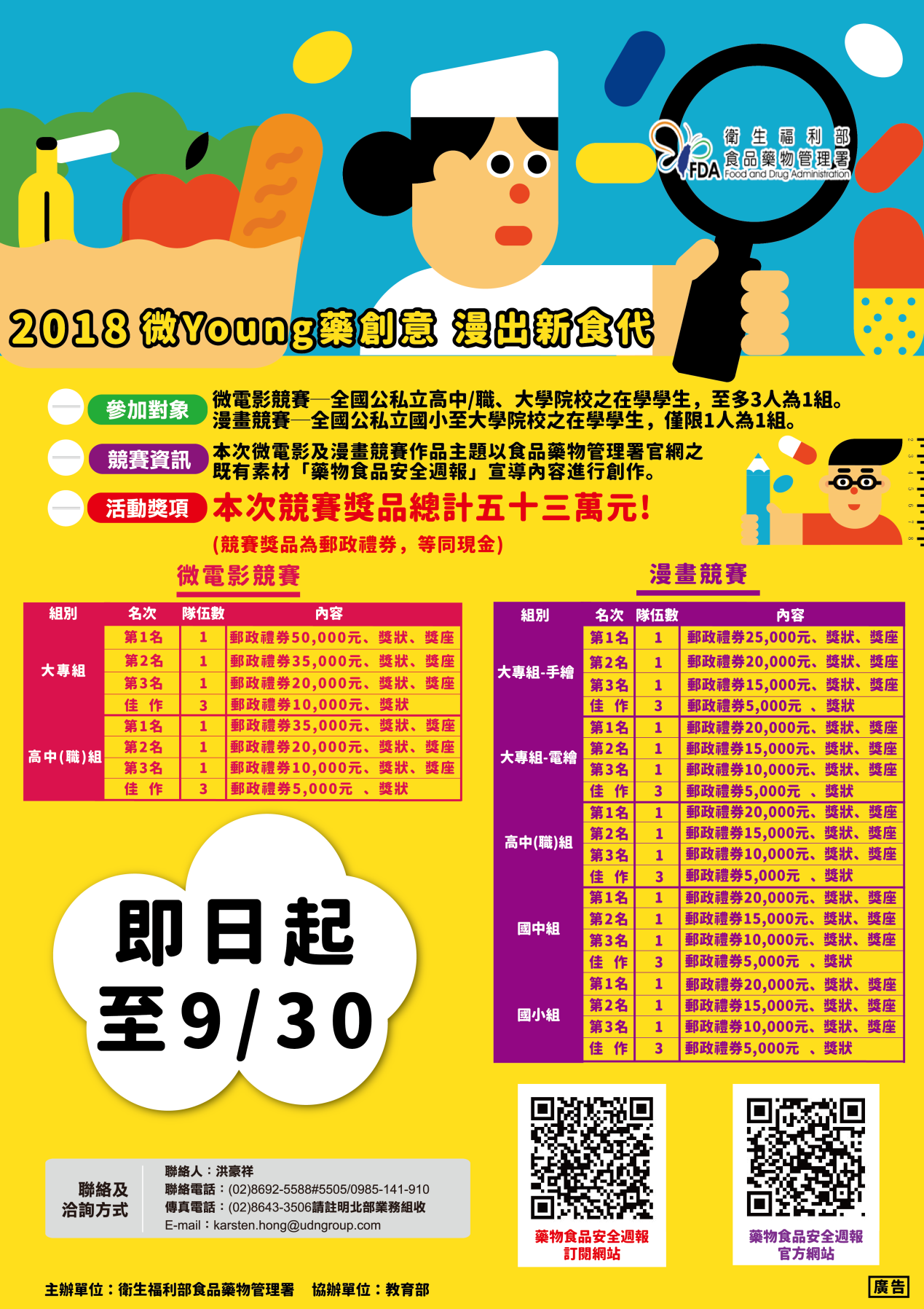 衛生福利部食品藥物管理署『2018微YOUNG藥創意 漫出新食代』微電影暨漫畫競賽活動計劃